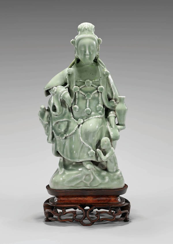 ANTIQUE LONGQUAN-TYPE CELADON GUANYIN