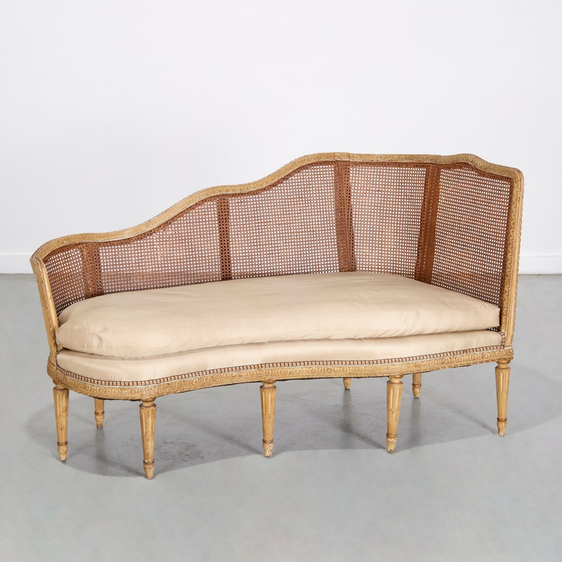 Antique Louis XVI style caned settee
