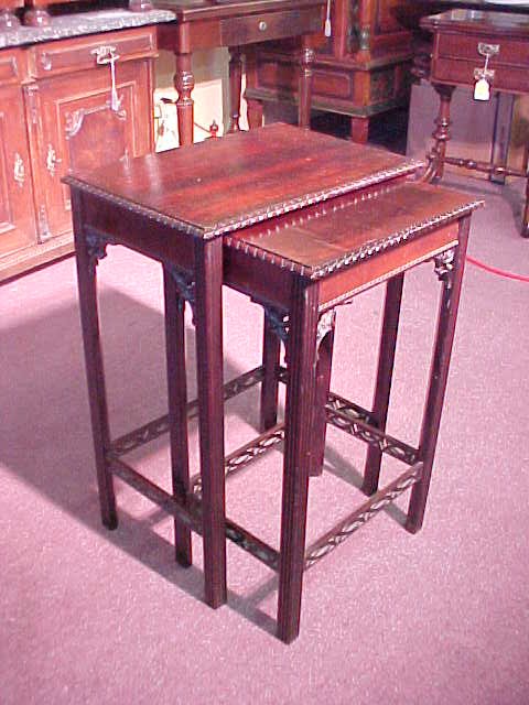 ANTIQUE MAHOGANY CARVED STACKING TABLES