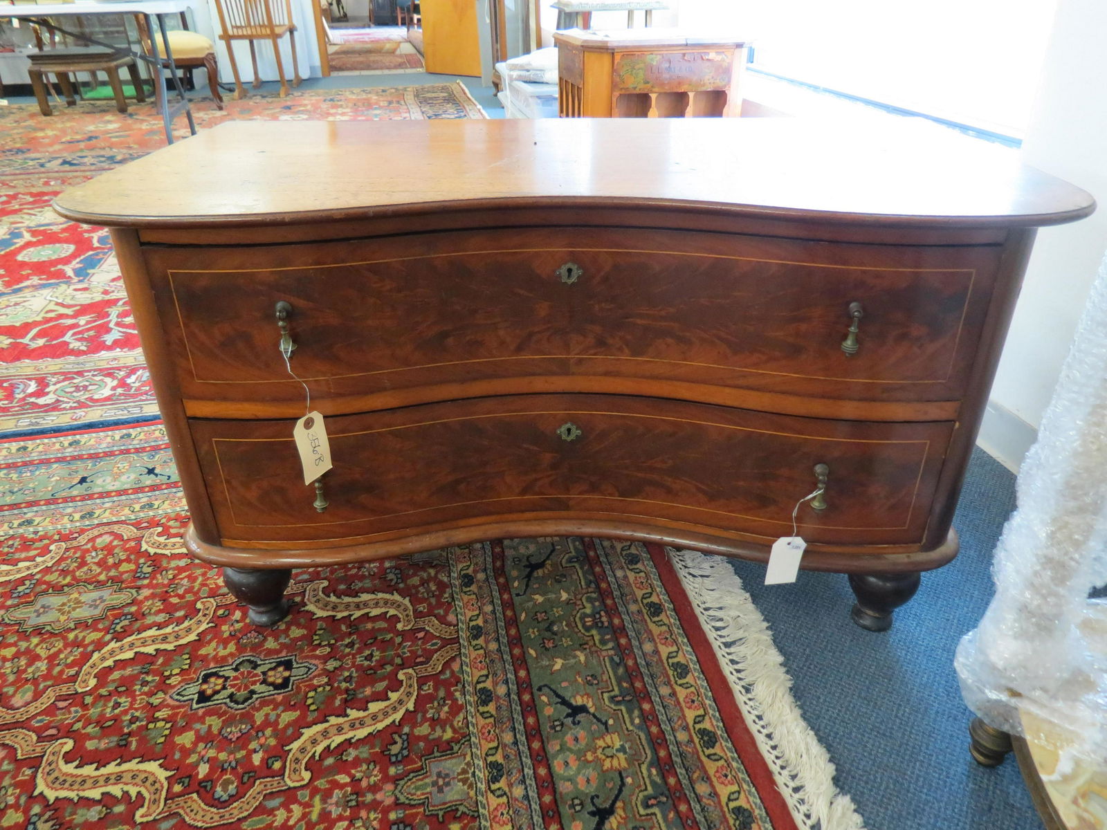SoldAntique Mahogany Bowfront Chest of DrawersAntique Mahogany Bow Front Chest of Drawers. Used condition, wear, worn, scratches, chips. 41" tall x 39" wide x 19" deepSee Sold Price