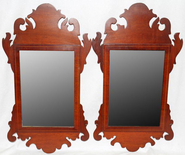ANTIQUE MAHOGANY MIRRORS WITH STRING INLAY,