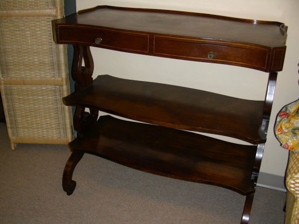 Mahogany Inlaid Faux Bamboo Two Tier Stand with Two Drawers & Tooled Leather TopLangston Auction Gallery4.7(542)$130(4 bids)4 days Left