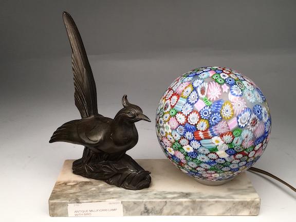 ANTIQUE MILLIFIORRI LAMP WITH BIRD.