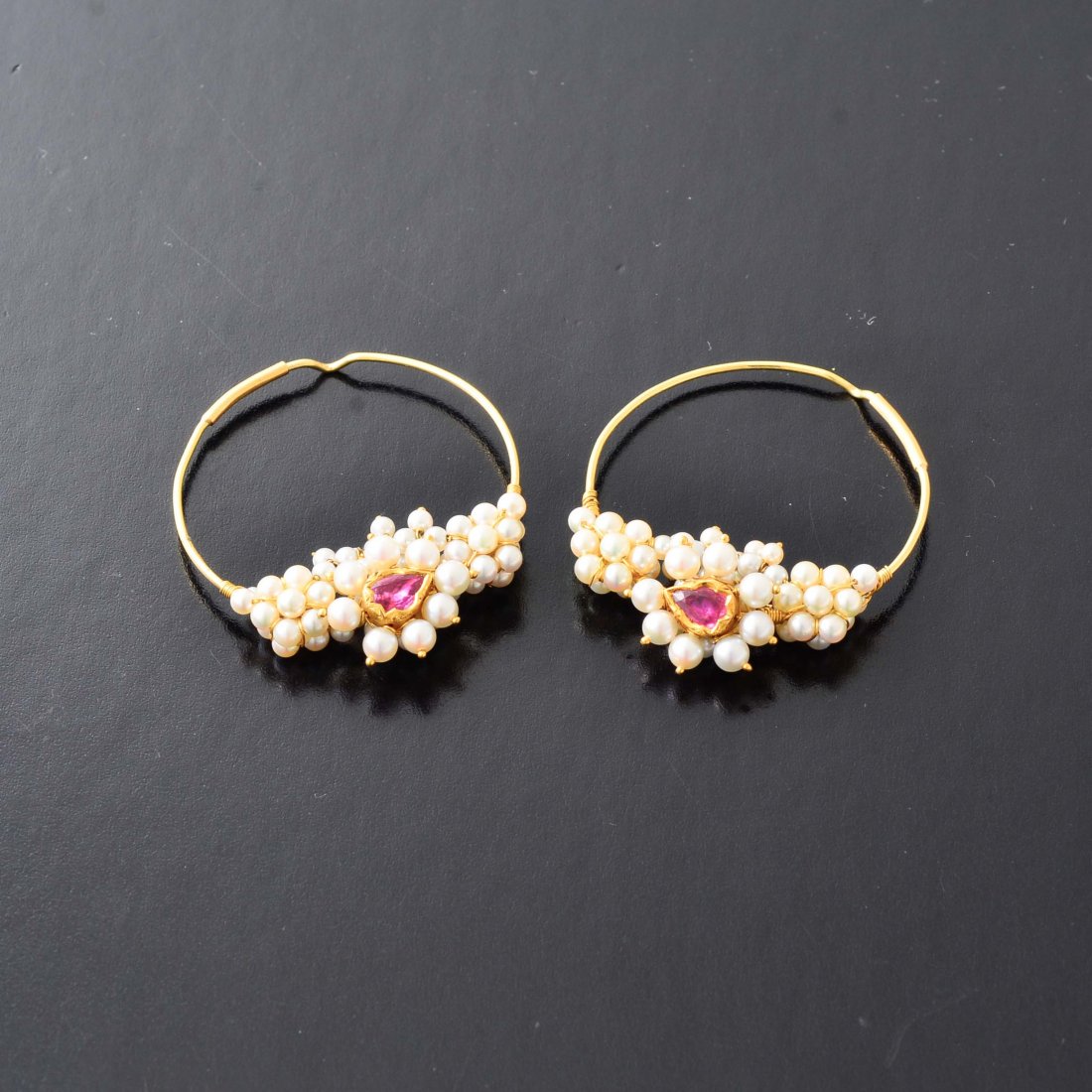 Antique Natural Pearl Ruby Earrings