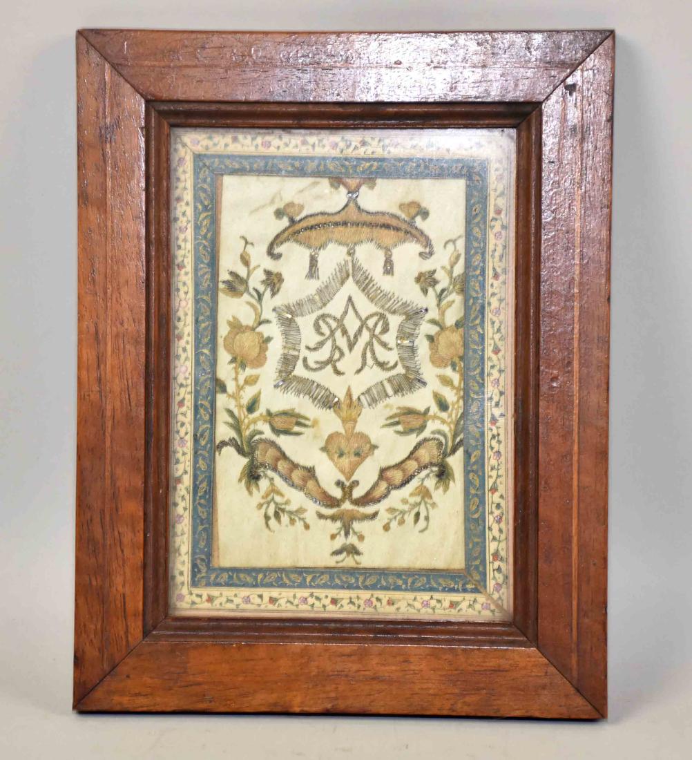 ANTIQUE NEEDLEWORK, Mary Williams. Circa 1890. Frame: