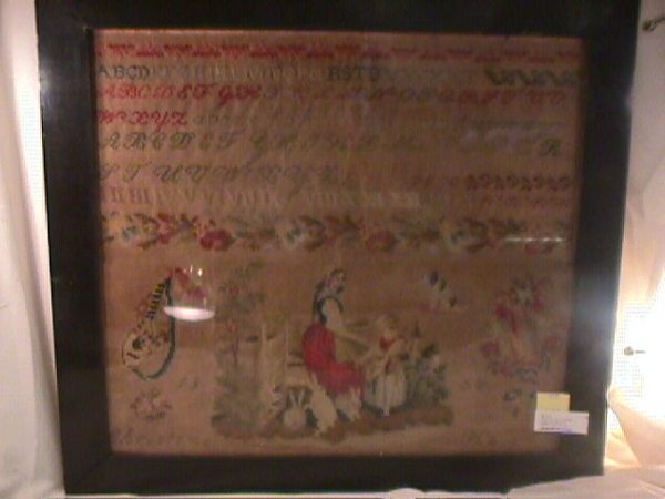 ANTIQUE NEEDLEWORK SAMPLER 1854 DOG RABBIT CHILD M
