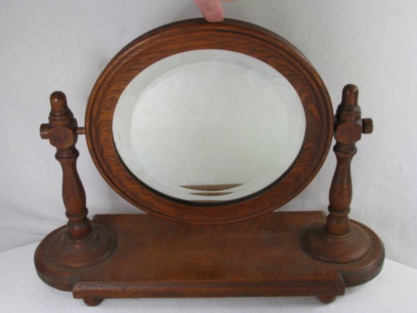ANTIQUE OAK TABLE TOP SHAVING MIRROR