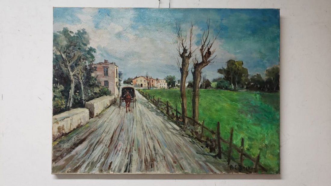 Antique Oil Canvas painting - Signed ALBERT E. BACKUS