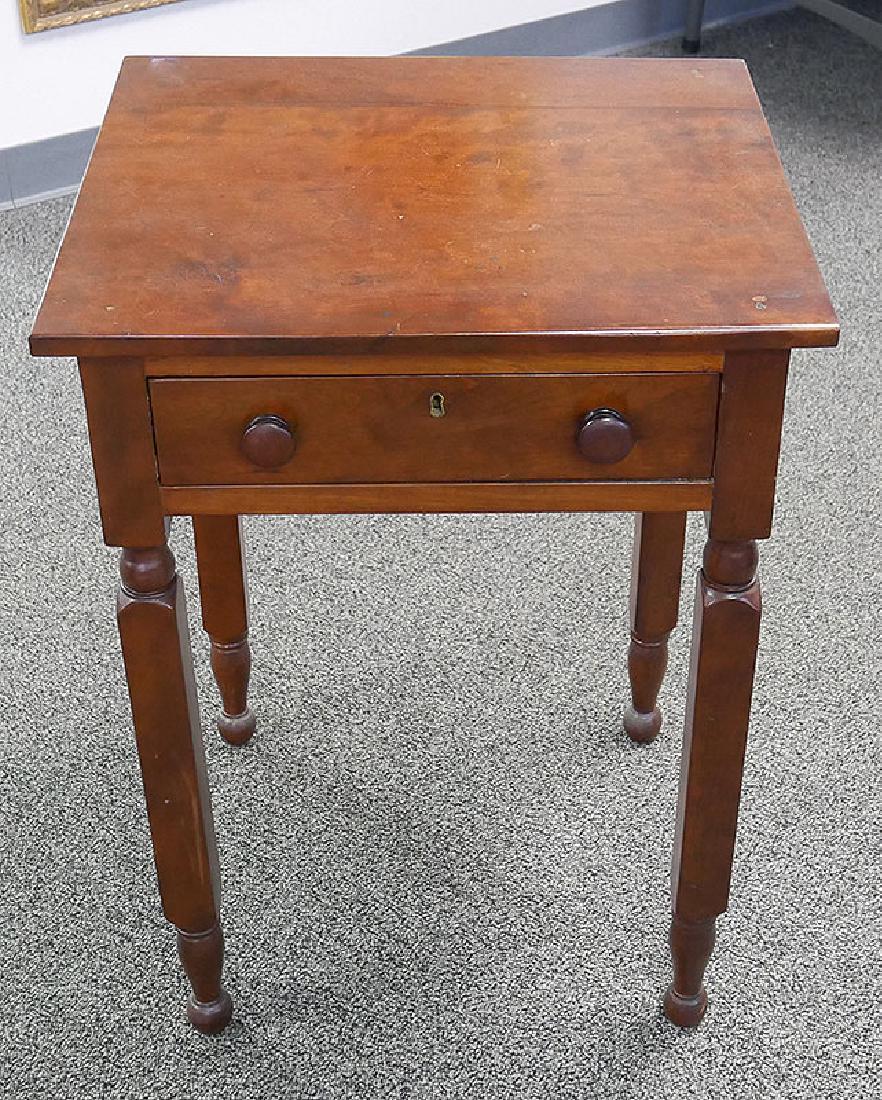 Pedestal Table and Low Table with Drawer4 days LeftAntique American Sheraton Style Cherry One Drawer Side Table - Work Stand 17"X22"X29"Mar 08, 2026Antique Cherry One Drawer Side Table 19"X19"X29.5"Mar 08, 2026Antique American Sheraton Style Cherry One Drawer Work Stand - Side Table 19"X24"X29"Mar 08, 2026Davis Wood Side End Table3 days LeftSheraton One Drawer Stand Cherry and Tiger Maple, turned legs, 38"X34"X24"2 days LeftTWO DRAWER STAND5 days LeftColonial style slant front writing desk w/one drawer, turned legs. Interior has one drawer & 42 days LeftAMERICAN LATE FEDERAL CHERRY STAND TABLEMar 06, 2026OVERSIZED ANTIQUE SHERATON ONE DRAWER STAND.3 days LeftEARLY ONE DRAWER TAVERN TABLE6 days LeftMaple One Drawer Night StandMar 04, 2026Southern Cherry One-Drawer Work Table with Spiral Turned Legs, ca.1840-60Mar 07, 2026THREE DRAWER WOODEN NIGHTSTAND/CABINETMar 08, 2026Single Drawer Oval Parlor TableMar 06, 2026Cherry Two-Drawer Work Table, Kentucky Region, Mid-19th CenturyMar 07, 2026