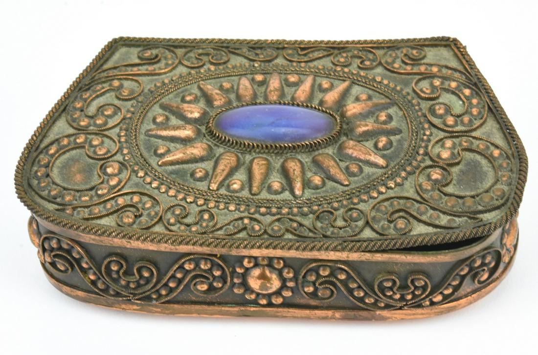 Apollo Hollywood Regency Gilt Metal Filigree Jewelry Box with Carved Stone InsetKellie's Estate Sales4.6(161)$5(1 bid)Mar 01, 2026