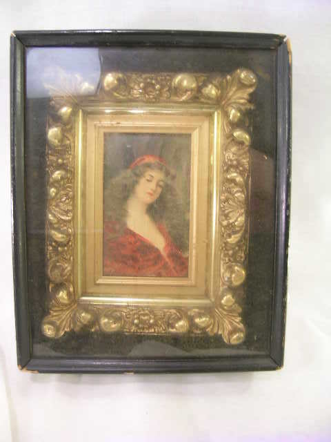 Miniature Porcelain Painting and Gold Gilt Frame