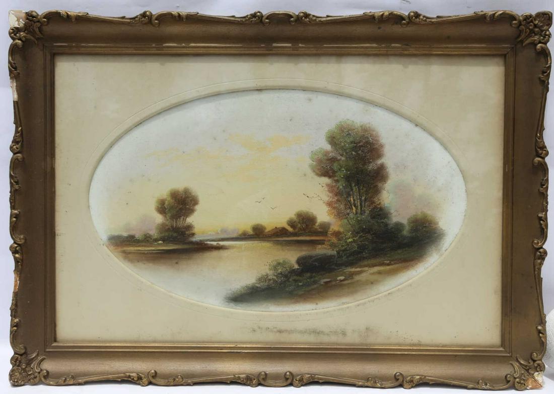 ANTIQUE OVAL LANDSCAPE WORK ON PAPER