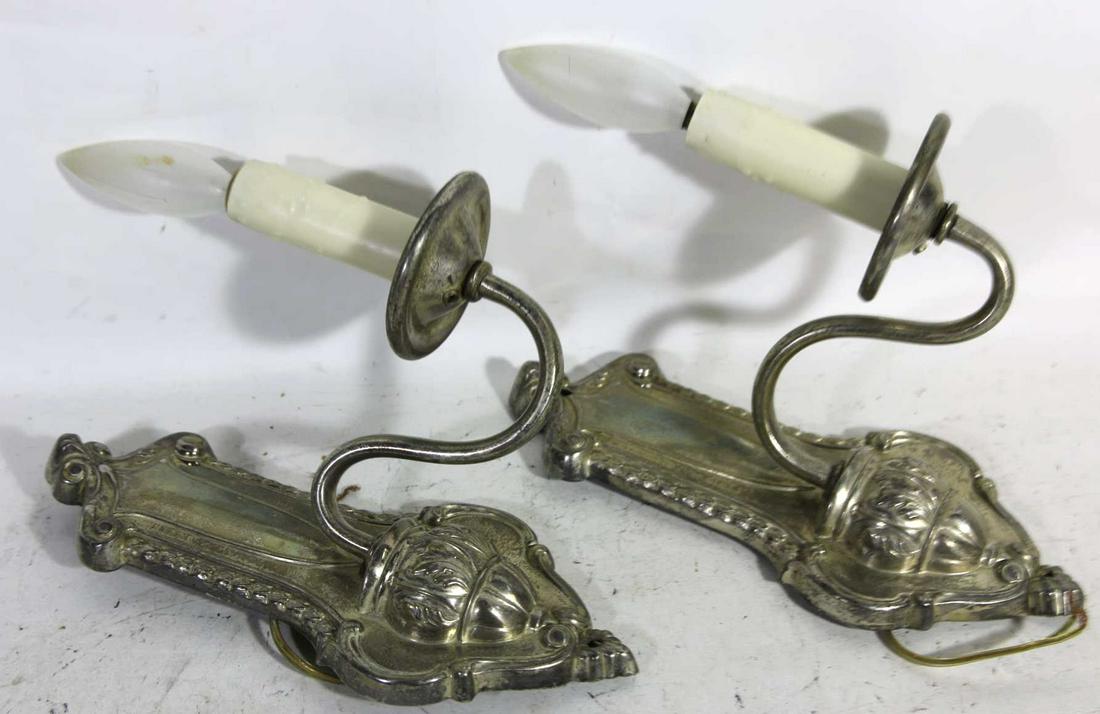 ANTIQUE PAIR SILVER SINGLE LIGHT SCONCES
