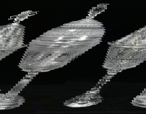 ANTIQUE PATTERN GLASS COVERED COMPOTES