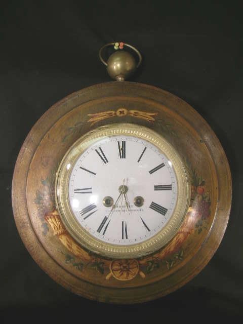 ANTIQUE PERRELET TOLE HAND PAINTED CLOCK