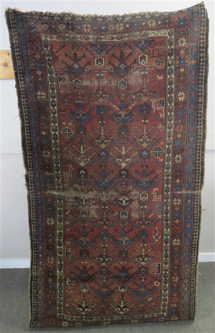 Handmade antique distressed Persian Shiraz rug 4.9' x 11.2' (152cm x 342cm) 1900sChairish Auctions4.5(10.3k)$320
