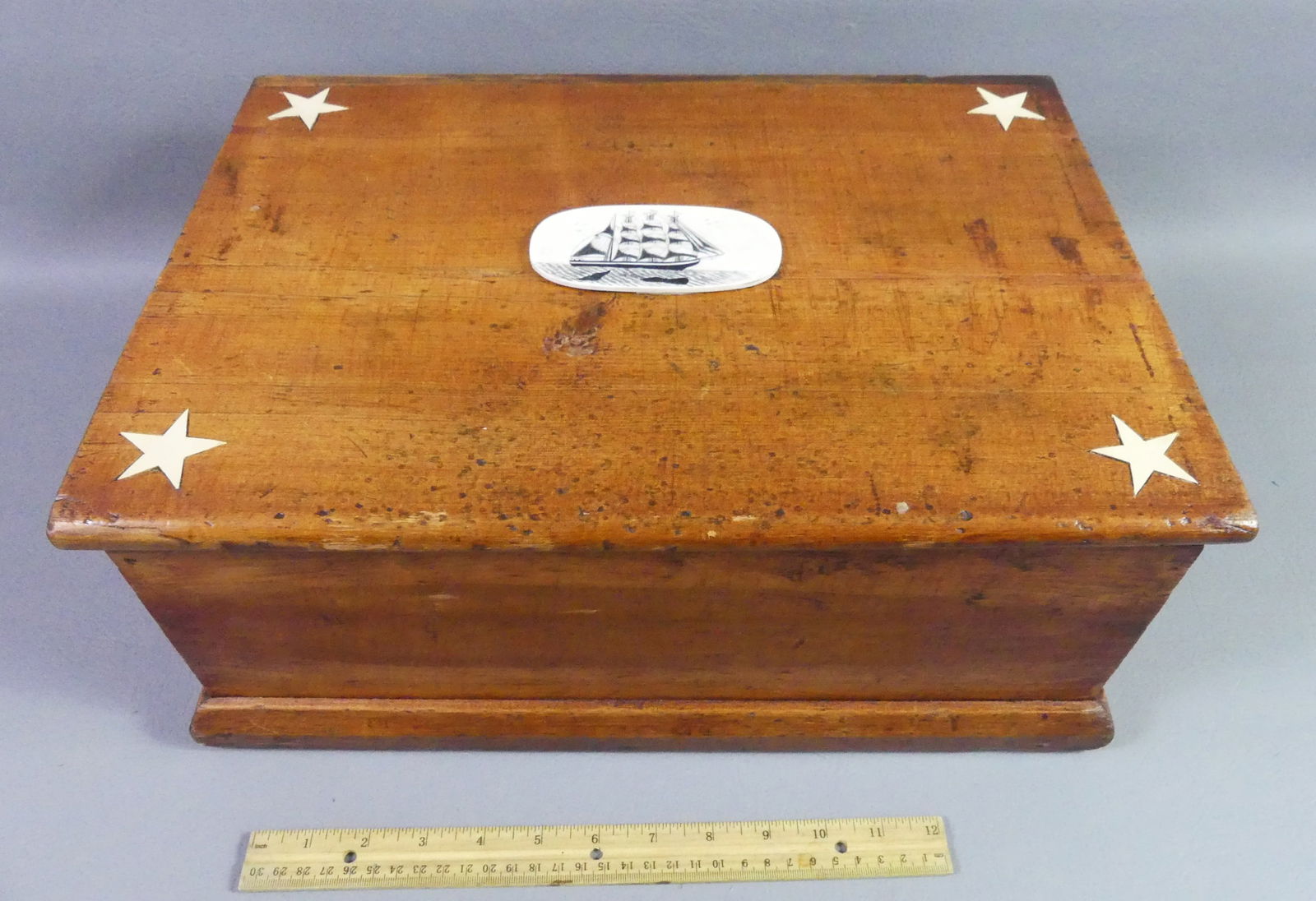 ANTIQUE PINE BOX W/SCRIMSHAW