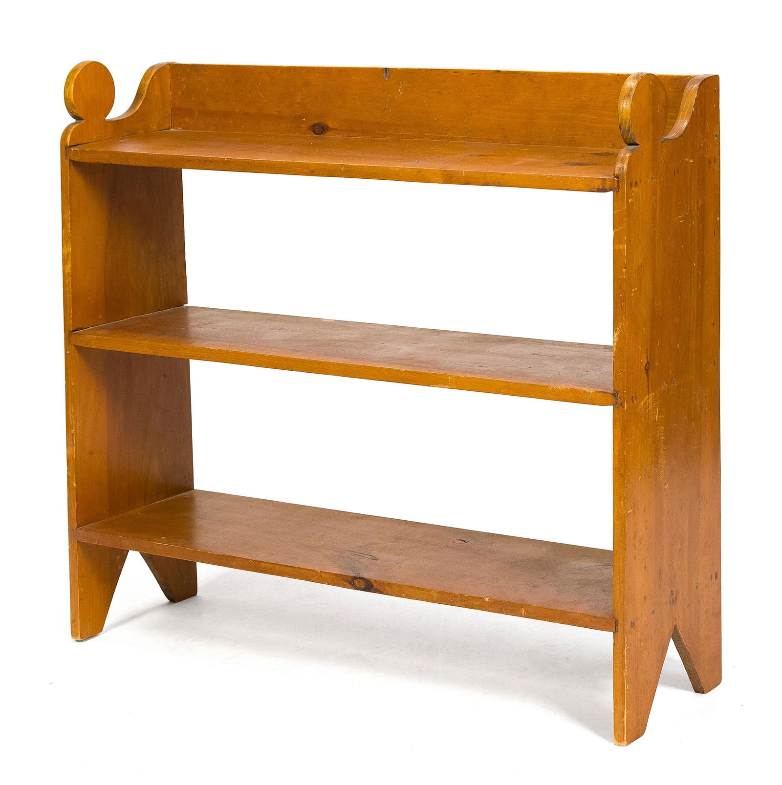 ANTIQUE PINE BUCKET BENCH WITH LOLLIPOP ENDS.