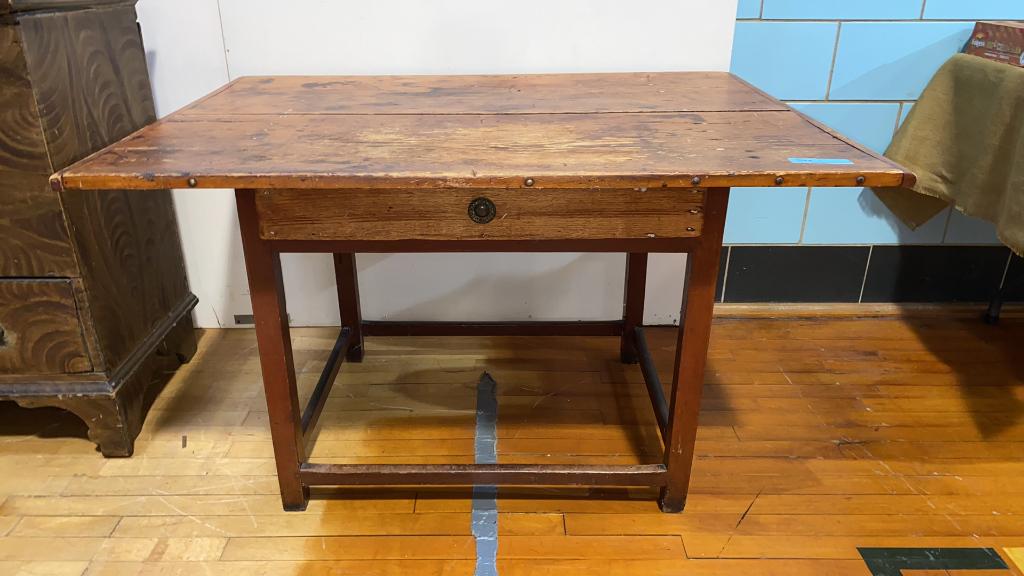 Stretcher Base Tavern Table, pinned breadboard top, one dovetailed drawer with wooden pull, nicely5 days LeftAntique One-Drawer TablePine DeskMar 06, 2026SPINDLE GALLERY WOOD WRITING DESK WITH TURNED LEGS2 days LeftAmerican Vernacular Pine Tavern TableFeb 27, 2026Country Pine Work Table with 1 drop leaf, has remanence of old green paint, 48"W x 27"T x 39 1/2" w/5 days LeftGate Leg TableMar 06, 2026EARLY NH RED PAINTED TAVERN TABLE.6 days LeftCountry One-Drawer TableDemilune TableMar 06, 2026Excellent South Carolina Federal Yellow Pine Huntboard Lexington CountyFeb 28, 2026Federal Mahogany Card Table, 19th Century5 days LeftVintage Napanee Drop Leaf Kitchenette Table with Enamel TopFeb 28, 2026Charming Antique Wooden Farmhouse Table with Turned Legs1 day LeftTavern Table5 days LeftAntique American Primitive tavern table7 hrs Left