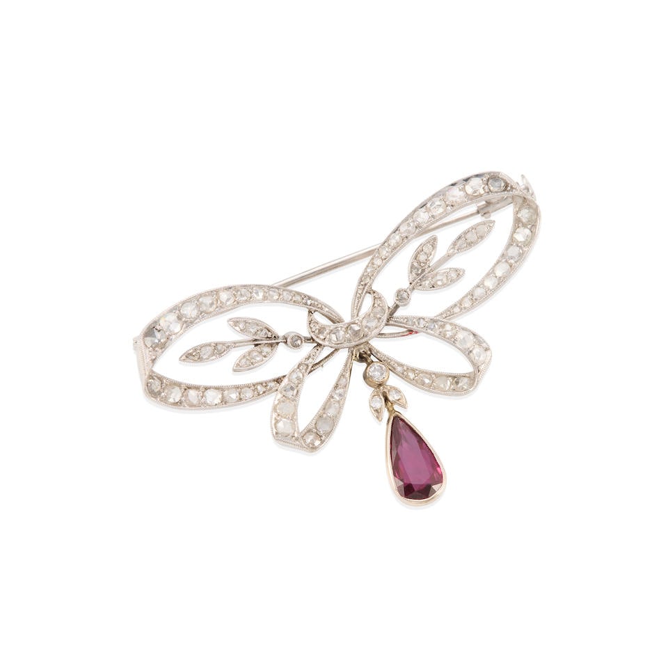 Platinum 11.10ct Diamond and Ruby Bow and Bloom BroochEastern European Art Gallery Inc$17,0002 days Left