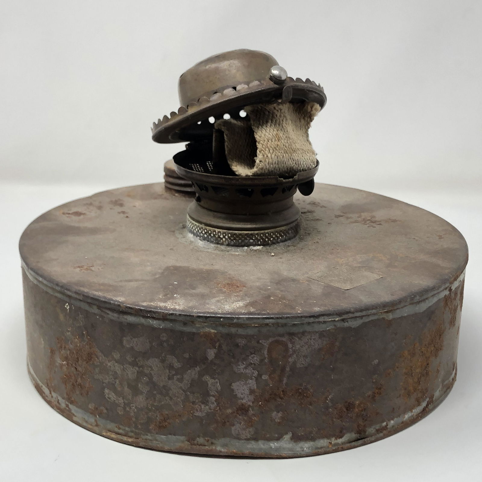 antique PORTABLE KEROSENE HEATER with braid wick rusty