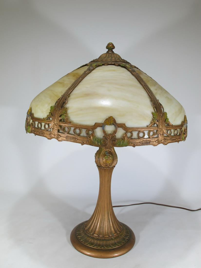 TABLE LAMP WITH SLAG GLASS SHADE.