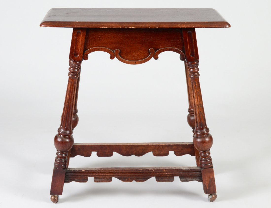 Antique Oak Dining Table with Five Baluster Legs and Casters