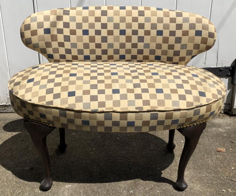 Antique Queen Ann Custom Upholstered Vanity Settee