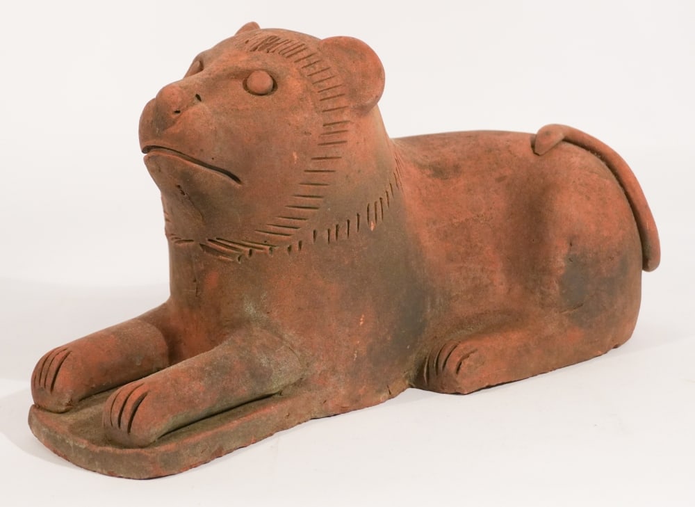 Antique Redware Figural Lion Bank