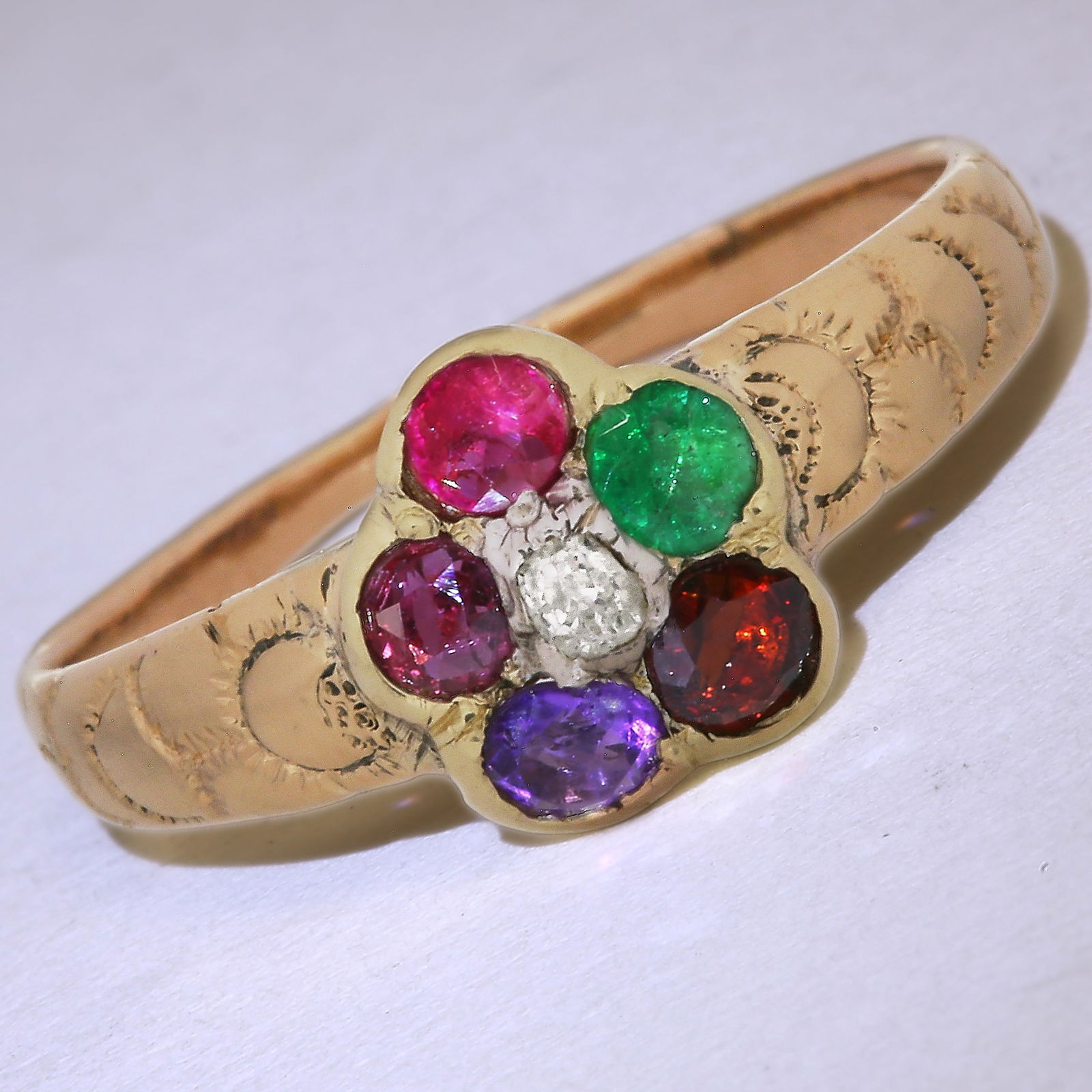 ANTIQUE REGARD DAISY CLUSTER GOLD RING,