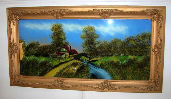 Antique Reverse Painted Landscape Scene Circa 1900.