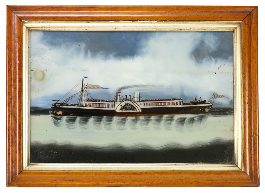 Antique Reverse Painted Portrait Steamer Ship