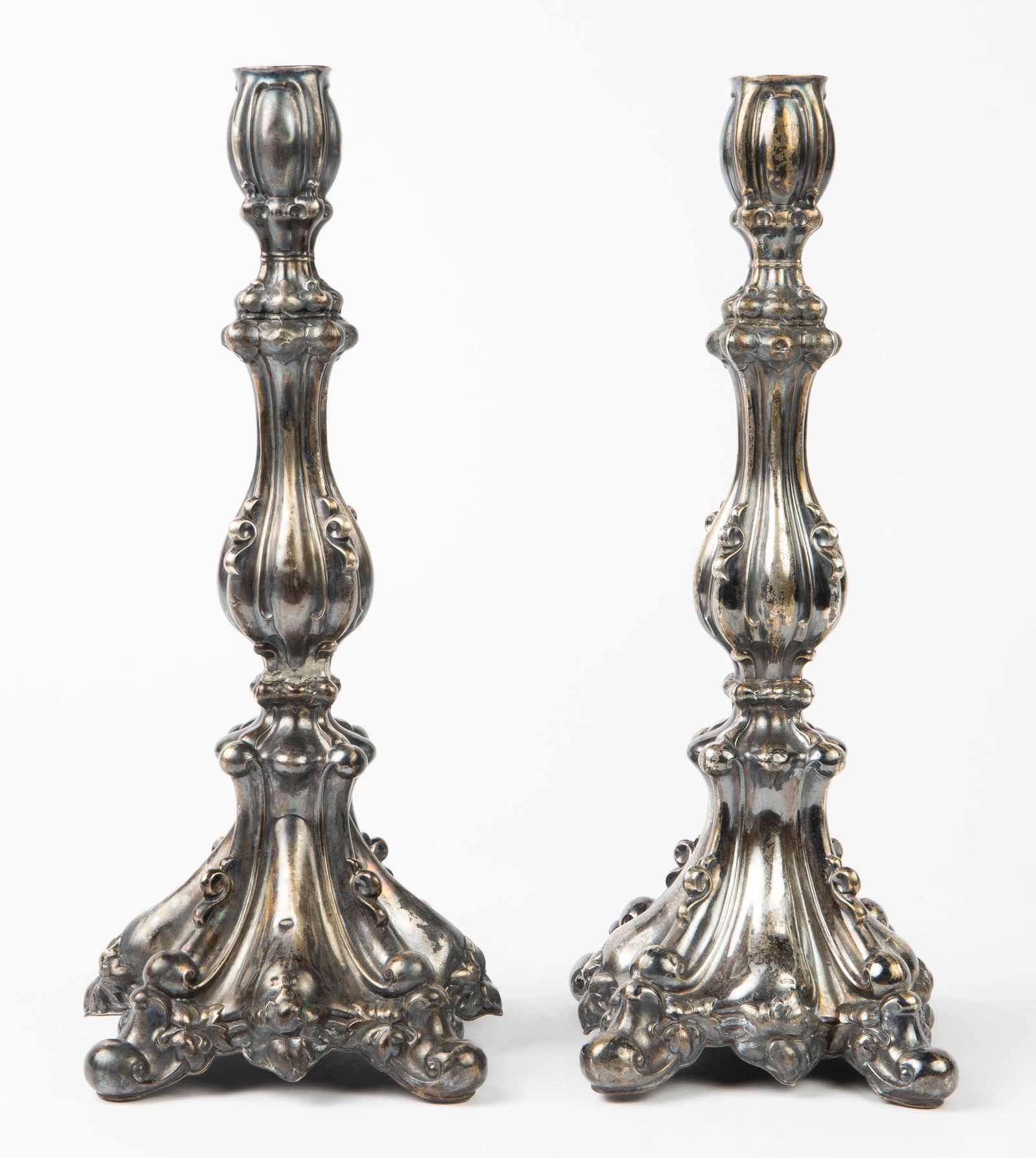 Antique Rococo Style Silver Candlesticks.