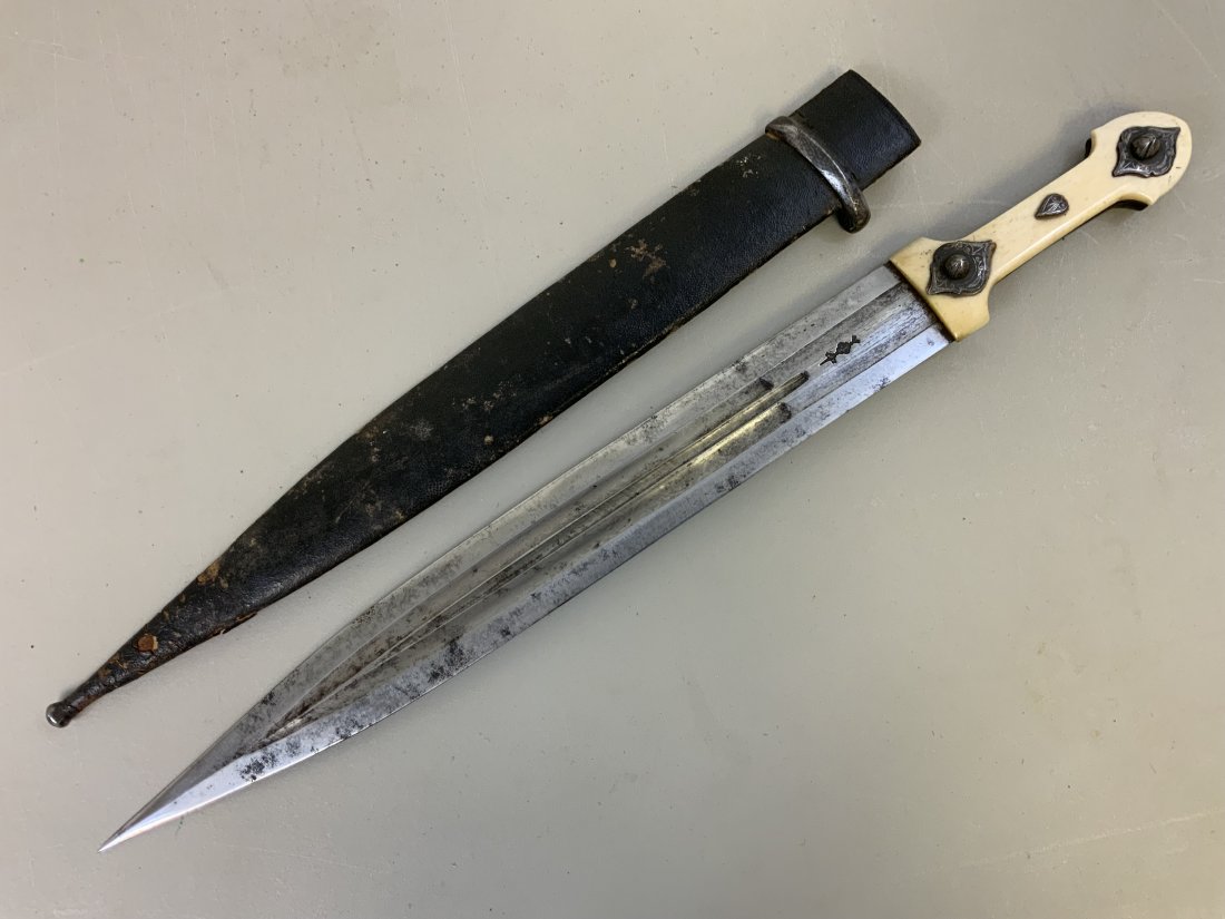 U.S. Model 1917 & U.S. Model 1898 Krag KnivesMar 14, 2026Antique Caucasian kindjal DaggerMar 15, 2026Ottoman Iron Dagger with Bone Hilt1 day LeftA CAUCASIAN SILVER MOUNTED KINDJAL DAGGER, 19TH/20TH CEN.Mar 22, 2026Argentine Model 1898 Artillery Sword and ScabbardMar 14, 2026Antique Caucasian kindjal DaggerMar 15, 2026A German Mauser K98 WWII Bayonet, Marks 42 agv and JWHMar 14, 2026A CENTRAL ASIAN BONE-HILTED KARD PESH-KABZ DAGGER, 18-19 CC.Mar 22, 2026Pre Civil War Era Sheffield Bowie KNIFE Made For the Southern US MarketMar 28, 2026HITLER YOUTH DAGGER [RZM M7/13]Mar 12, 2026WWII FASCIST ITALIAN YOUTH DAGGERMar 12, 2026A FRENCH DAGGER WITH A HORN GRIP AND LEATHER SHEATH, 19TH CEN.Mar 22, 2026Very Good Antique Middle Eastern WOOTZ DAGGER Leather Wrapped ScabbardMar 28, 202615 1/2" Brass & Wooden Handled Damascus Shive SwordMar 25, 202615 1/2" Brass & Wooden Handled Damascus Shive SwordMar 17, 2026French Made for US market Model 1840Mar 14, 2026