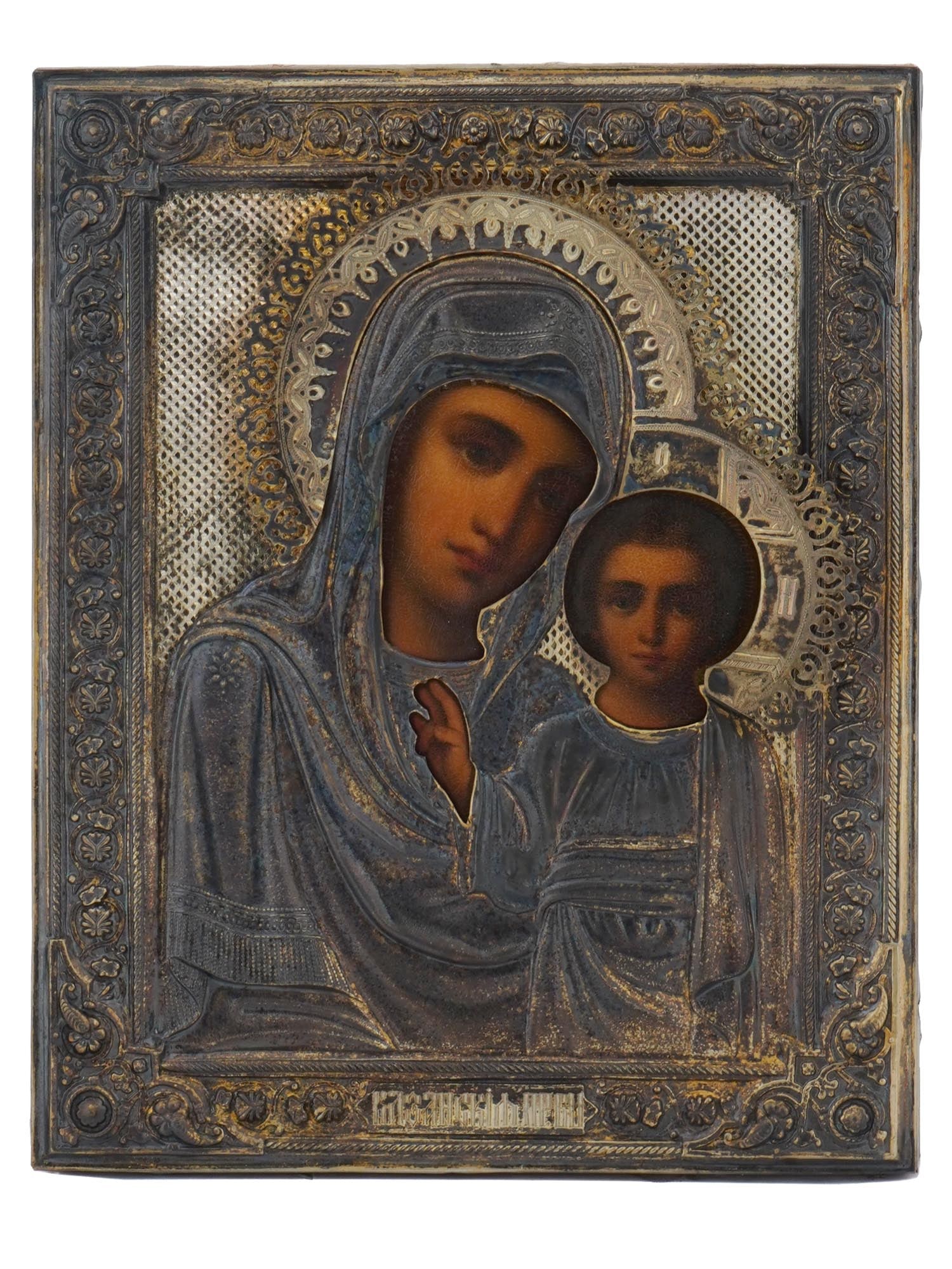 ANTIQUE RUSSIAN ICON KAZAN MOTHER OF GOD IN SILVER OKLAD