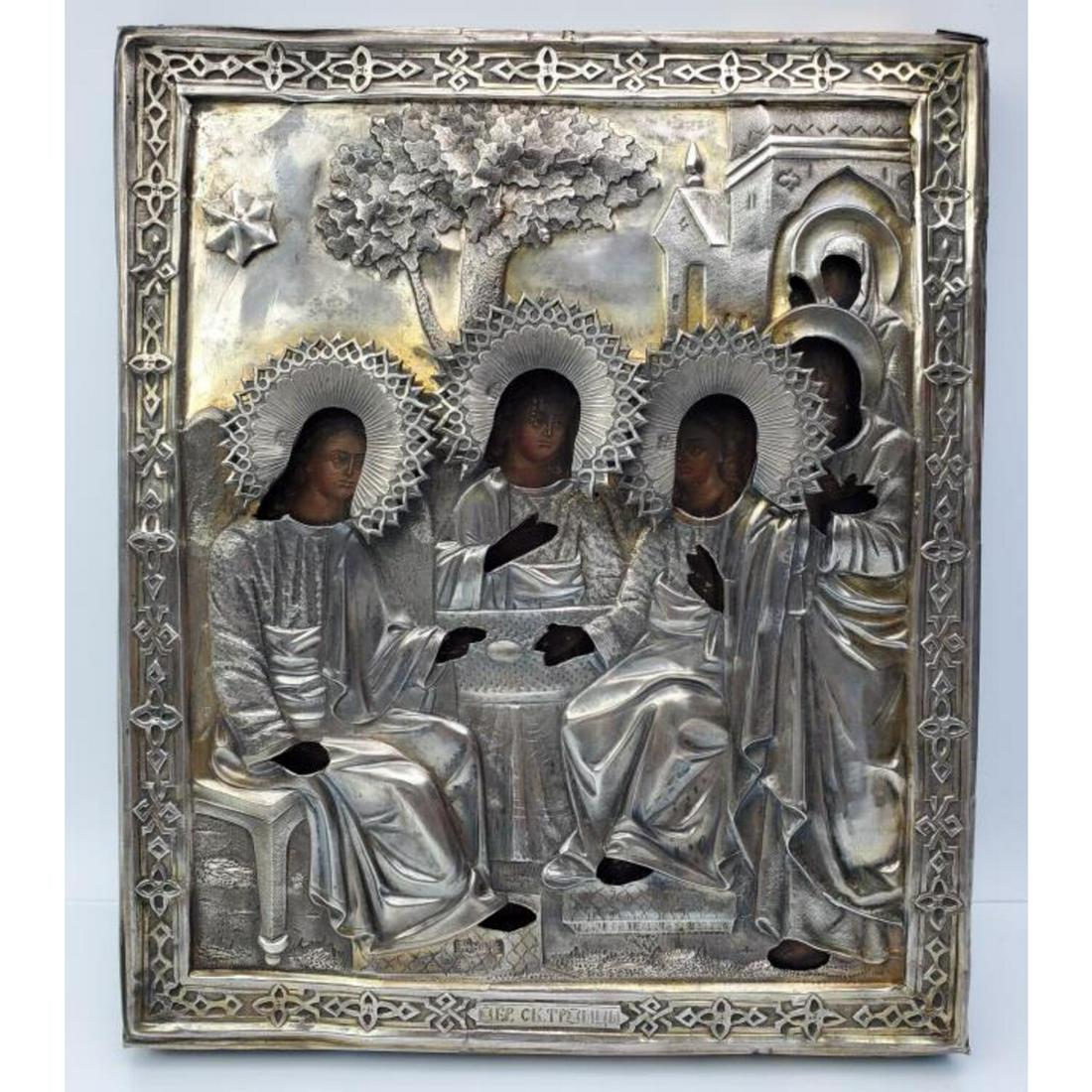 Antique Russian Silver Icon Circa 1869 "Trinity"