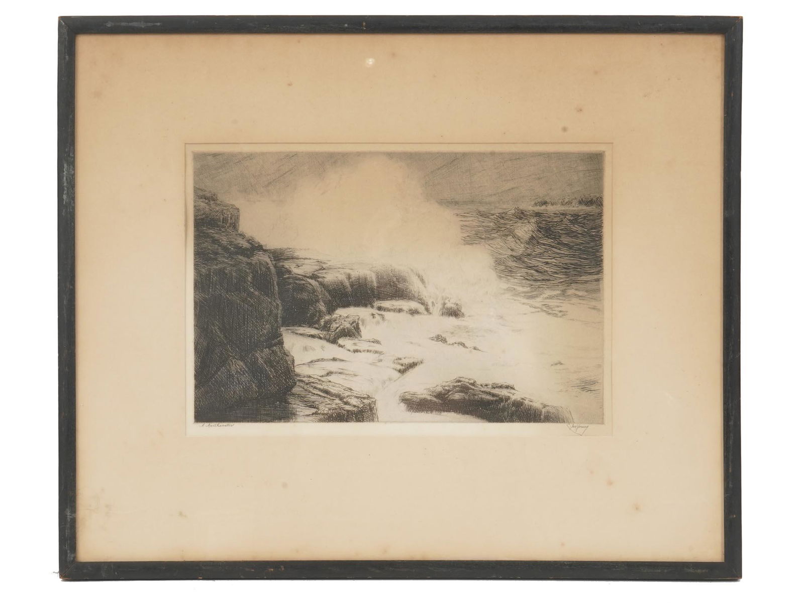 ANTIQUE SEASCAPE ETCHING SIGNED BY C JAC YOUNG