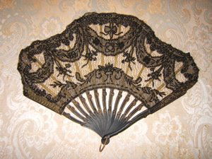 SoldAntique Victorian Folding FanAntique Victorian Reticulated Carved and Silk Lace Sequin Folding Fan. Measures 7-1/2". We Will Not Ship This Item Out of State of Florida. Anyone Having This Item Shipped Must Have a Florida AddressSee Sold Price