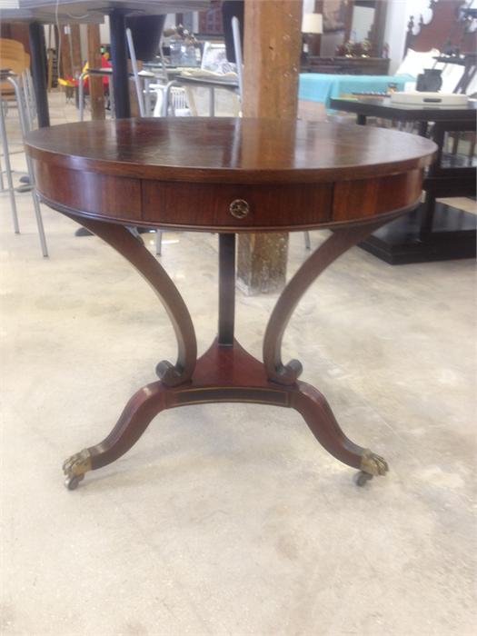 Mahogany Regency Round Drum End Table with Single Drawer and Brass AccentsMynt Auctions4.4(830)$1003 days Left