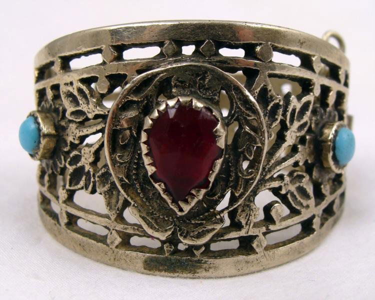 Antique Silver Bracelet with Ruby and Blue Gemstones