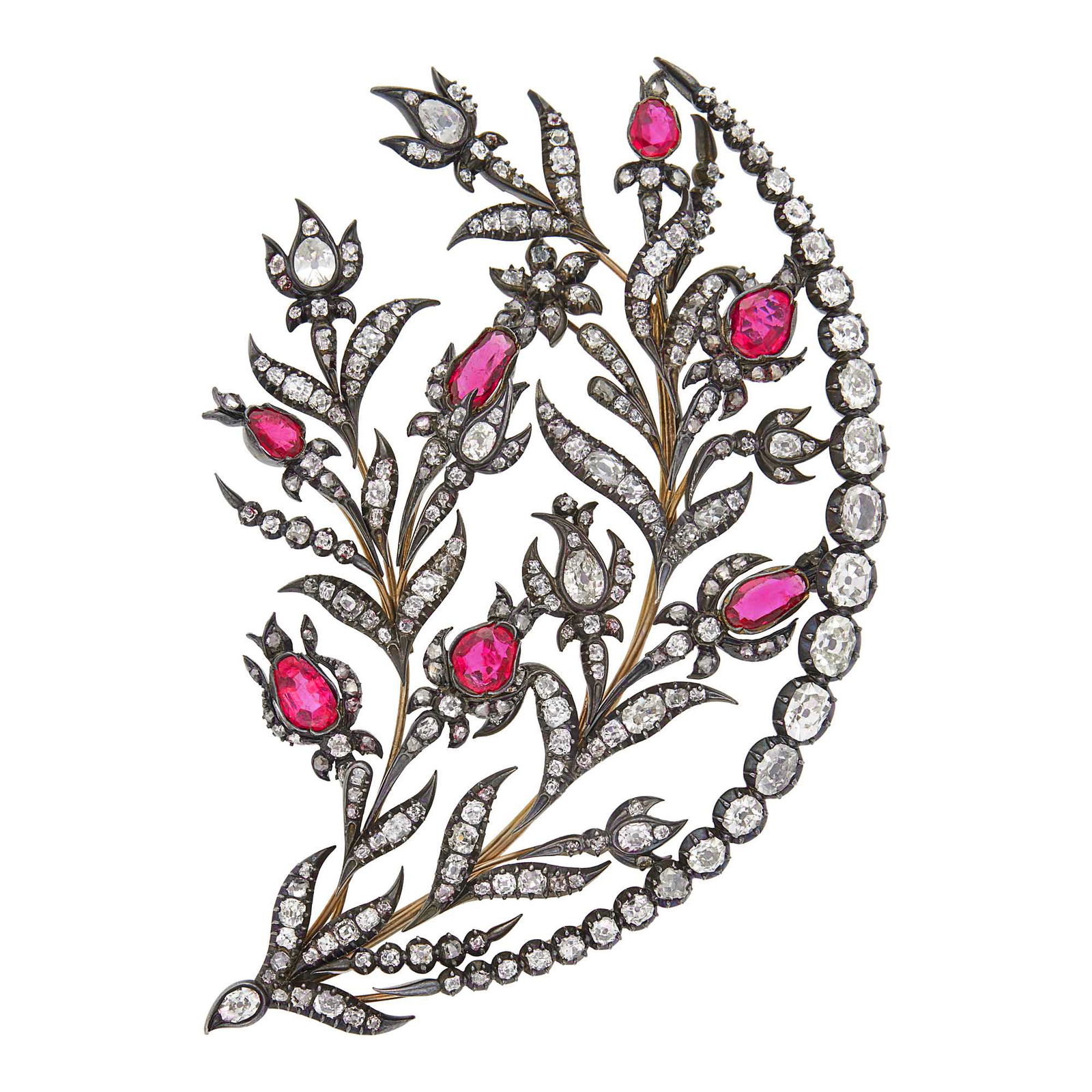 Antique Silver, Gold, Ruby and Diamond Brooch