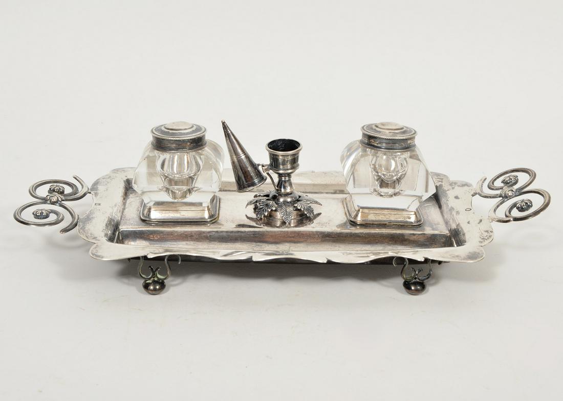 Lot of Silver Items.Mar 10, 2026Lot of Silver Items.Mar 10, 2026CHRISTOFLE FRENCH FIGURAL SILVER-PLATED CENTERPIECE STANDS, LOT OF TWOMar 04, 20262 pc Lot Victorian Meriden & Rogers Silverplate Cruet Condiment Castors4 days LeftGeorge III Sterling Silver InkstandMar 16, 2026Sterling silver accessories. 1) English sterling silver tray and inkwell. 9in wide. Tray: 6.7 ozt.5 days LeftCOLLECTION OF SILVERMar 06, 2026Set of 7 inkwells. Silver. Partly England.4 days LeftDesk accessory. Silver-plated metal with crystal glass.4 days LeftMartial Gauthier Sterling Silver Inkstand, Paris, France, 1888-1902.Mar 10, 2026Silver Plate Epergne with Glass InsertsGeorge I Sterling Silver Cruet StandMar 16, 2026British Silver-plated & Glass Serving SetMar 05, 2026English Philosopher Silver Plate InkwellMar 17, 2026Silver writing set, European school, 19th century18 hrs LeftTWO SILVER PLATED OIL LAMPS Late 19th/Early 20th Century Heights 9" and 13".Mar 04, 2026