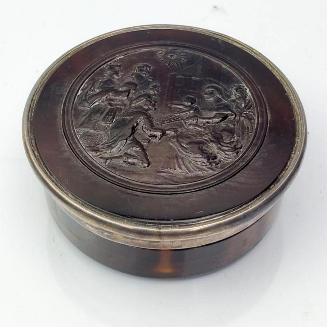 Antique Silver Mounted & Tortoise Shell Snuff Box.