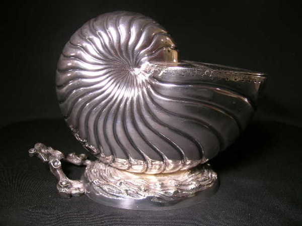ANTIQUE SILVER NAUTILUS SHELL SUGAR CONDIMENT DISH