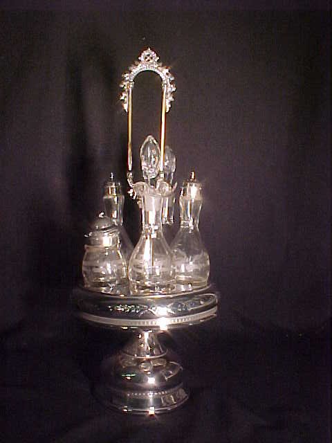 ANTIQUE SILVER PLATE CASTOR SET CRYSTAL