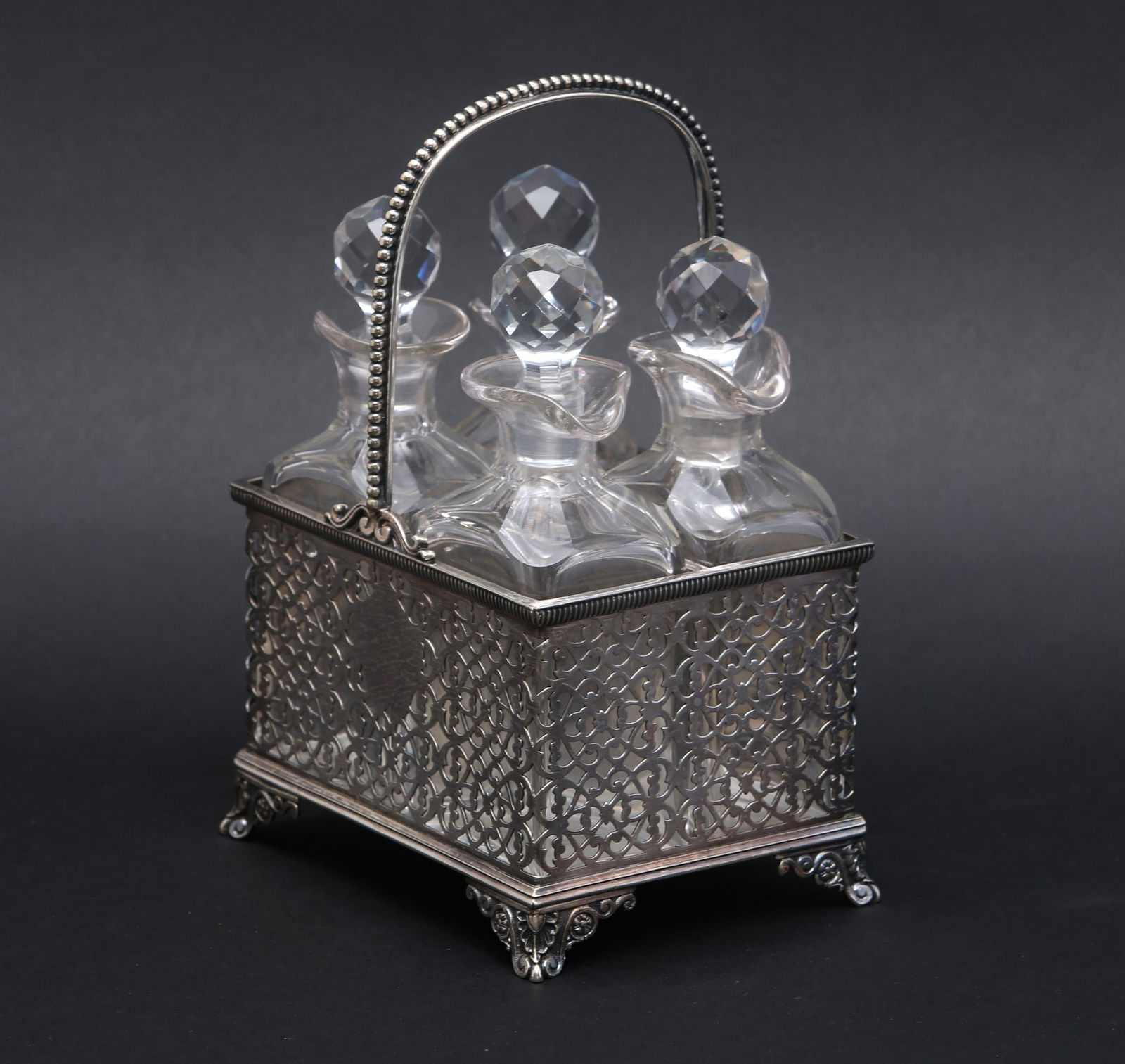 Antique Silver Plate Crystal Cruet Set