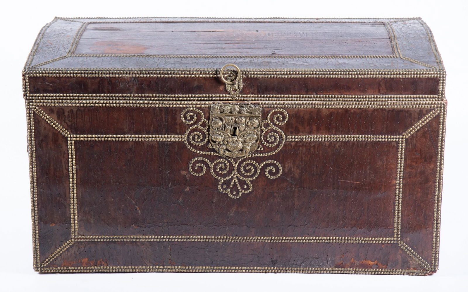 Dome Top hinged lid box, figural insert, brass hardware. Interior secondary lid. 16"W x 12"T x 10"D5 days LeftAmerican Dovetailed Grain Painted Storage BoxMar 07, 2026Antique Burr Walnut & Brass-Mounted StrongboxMar 10, 2026Indian Brass Mounted Carved Wood ChestMar 26, 2026A HIDE COVERED AND BRASS MOUNTED TRUNK, OF RECENT MANUFACTURECHINESE EXPORT LEATHER CLAD CAMPHOR WOOD TRUNK13 hrs LeftAntique Decorative Brass Studded Small Wooden BoxCowhide-Covered BoxAntique Dome Top Steamer Trunk15 hrs LeftVictorian Rosewood and Brass Inlaid Lap DeskMar 07, 2026Chinese Brass-Mounted Coromandel Lacquer Traveling Box7 days LeftTramp Art Folk Jewelry Box with Lion Head EscutcheonMar 14, 2026Asian Brass Mounted ChestMar 06, 2026Brass Bound Dovetailed Mahogany Traveling Desk Box with Three Hidden Drawers, 19th CenturyFeb 28, 2026Hinged Lid Walnut Box with divided interior, brass fittings, 20"X18"X6"5 days Left18th Century Spanish Leather Brass Nailhead Domed Trunk with Key4 days Left