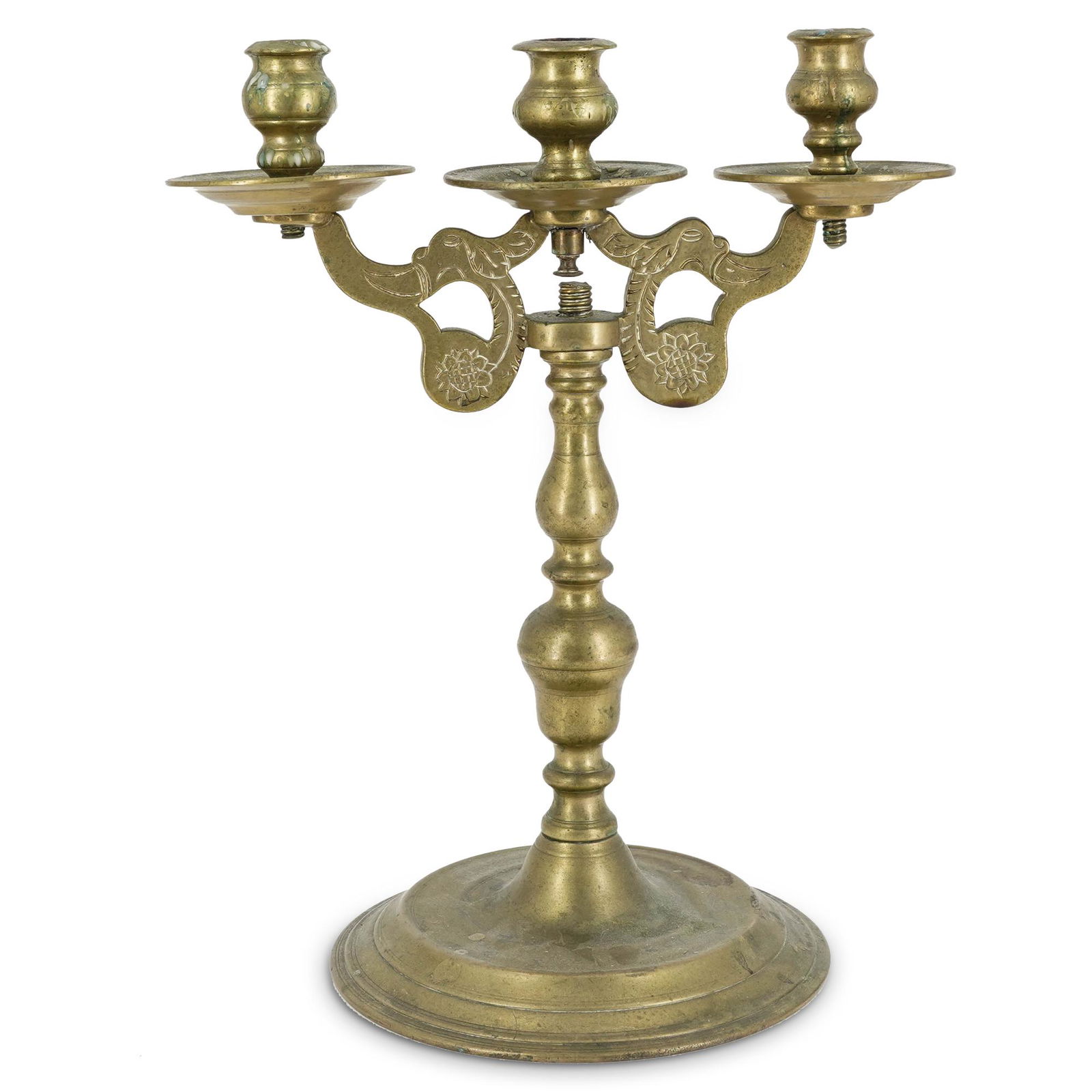 Antique Solid Brass Three-Arms Engraved Candelabra