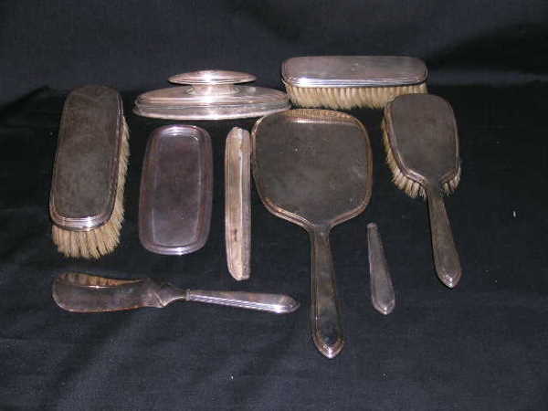 ANTIQUE STERLING SILVER 9 PC VANITY SET
