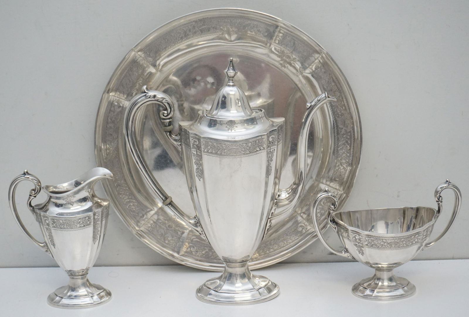 Birmingham Silverplated Melon Form Tea ServiceMar 07, 2026Wedgwood International Sterling Silver 3pc Demitasse Tea Set with Tray3 days LeftThomas Warner (Baltimore) American Silver Three-Piece Tea Service, c. 1810-1830Mar 08, 2026Very Fine Kirk Sterling Silver Repose Tea Pot With Cream Sugar & Tray1 day Left1895 Gorham Sterling Silver Repousse Five-Piece Tea and Coffee ServiceMar 08, 2026A Poole sterling silver 'Georgian' tea and coffee service5 days LeftDerby Silver Co. Silver Plate Tea Service, 4 Pcs.Mar 12, 20266PC STERLING TEA SERVICE, INTERNATIONAL, 133 TOWMar 07, 2026American Aesthetic Silver-Plate Four Piece Coffee Service, late 19th c., Coffee- H.- 12 1/4 in., W.-10 hrs LeftVictorian & Later Silver-Plate Serving Items (7)Mar 08, 2026American Sterling Silver Three-Piece Tea ServiceMar 14, 20264 pc Sterling Silver Gayer & Krauss Coffee Tea Set1 day LeftFine Gorham Six-Piece Sterling Silver Tea & Coffee ServiceMar 12, 2026Silver Plated Tea Service Grouping (6)Mar 07, 2026Vict./ Edward VII Silverplate Tea Service & a TrayMar 13, 2026Victorian & Other Silver-Plate Serving Pieces (9)Mar 08, 2026